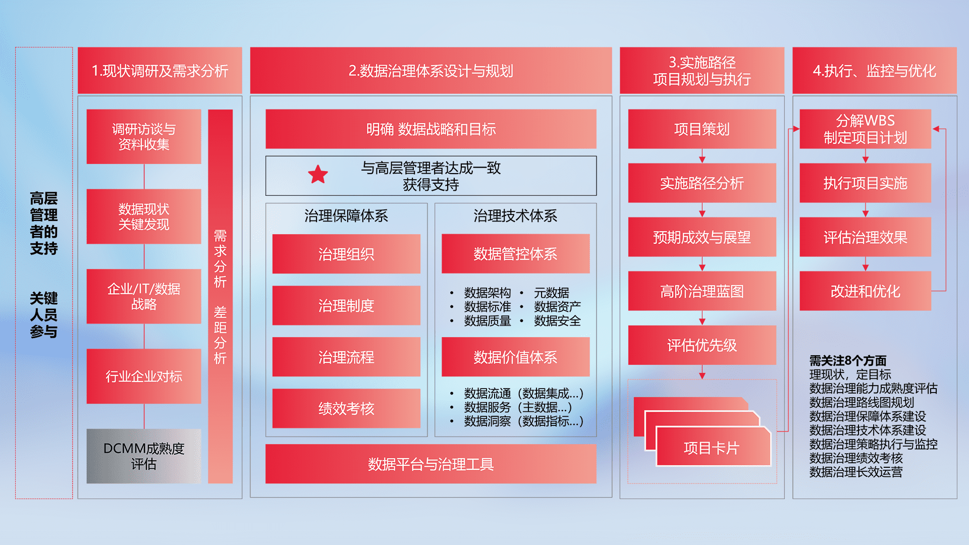 制定并执行统一的数据标准,,,,规范数据定义和格式,,,消除冗余和不一致性,,,实现跨部门和跨系统的数据一致性,,为企业提供标准化的数据基础。。。。